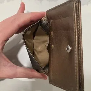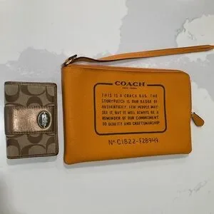Orange zip wristlet bag purse in great condition logo design front “story patch” badge leather