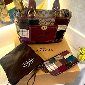 Coach bundle vintage limited edition holiday patchwork tote wristlet dustbag box