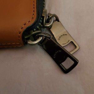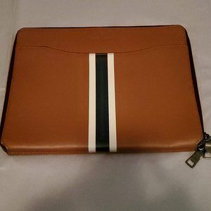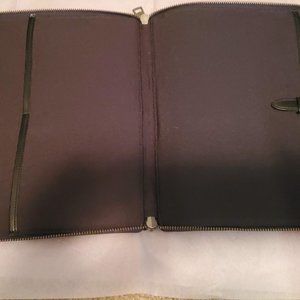 Calf Brown leather, with zip-around closure. Multiple internal document pockets