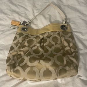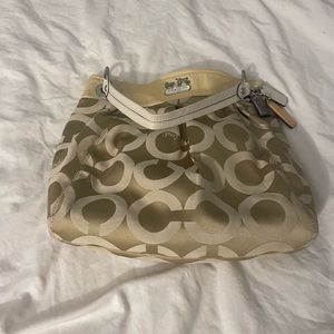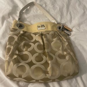 Coach champagne/gold tote bag w/ exchangeable strap. Great with blue jeans!