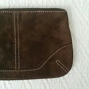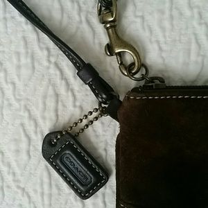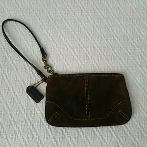 Coach chocolate brown sueded wristlet woth ivory contrast stitching. Impeccable condition.