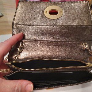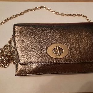 Coach metallic cross grain leather clutch with shoulder strap. Excellent condition.