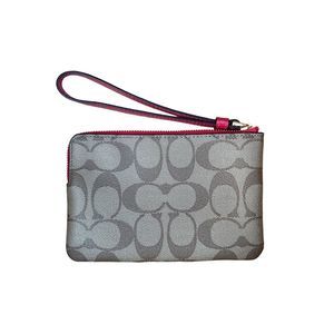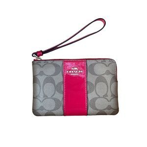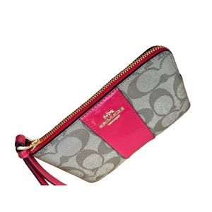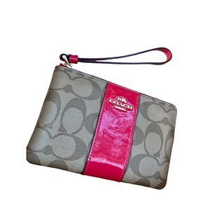 Coach coated canvas signature pink stripe clutch, wristlet nwot