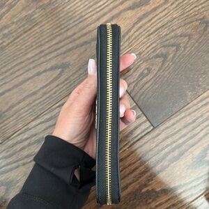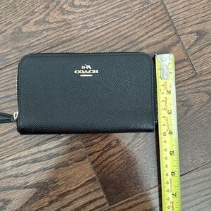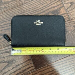 This wallet has only been used about three times however when purchased the front logo metal was showing silver, which I attempted to show in photo. Otherwise it is in perfect condition.