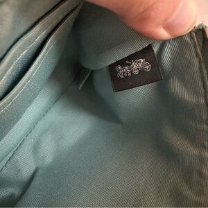 Coach corner zip baby blue wallet wristlet. Good shape with some normal wear, soft baby blue, wristlet attached to use as a wallet or to put essentials in! Card slots on the inside. Measures roughly 5x7 inches.