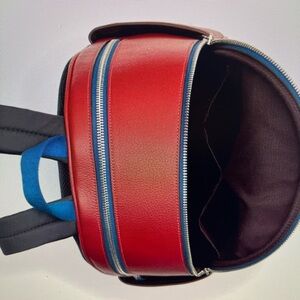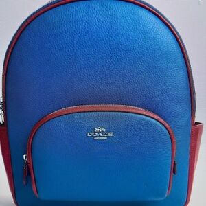 NWT Coach new tags court backpack and color block length is 10.75 inches height is 12.5 with is 4.75 refine pebble leather fabric linen handle with 2 1/4 inch drop adjustable strap outside zip pocket inside zip pocket inside inside multifunction pocket double zip enclosure retails $450 price is firm