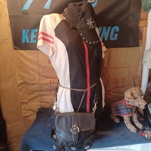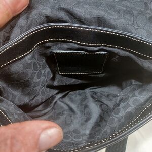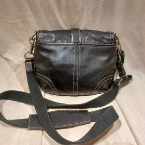 coach all leather crossbody, in EUC, 8x6 in size, magnetic snap to close, all silver hardware, outside rear pocket, adjustable and removable shoulder strap with shoulder pad, from a smoke free home