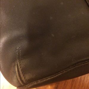 Coach crossbody - black vintage leather bag. Closes with a zipper on top, inside is lined with black material and has one zipper pocket. Adjustable strap, can wear the bag as a crossbody or on the shoulder. Measures ~11x11x3 inches. Some stains on the inside lining that are not noticeable when wearing the bag. Bottom corners have wear on the leather and some stains on the outside of the bag (shown in the last picture).