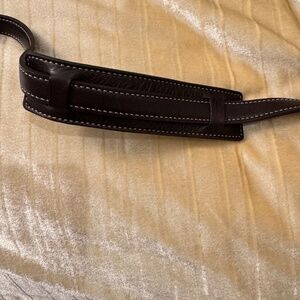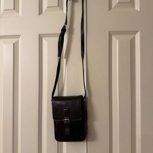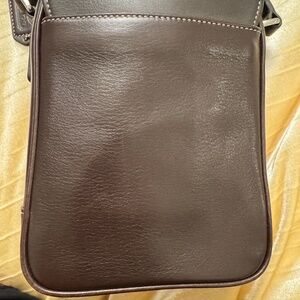 Coach espresso-brown leather snap-closure crossbody handbag with interior zipper pocket and comfort shoulder rest, approximately 8 inches x 6 inches, NEVER WORN