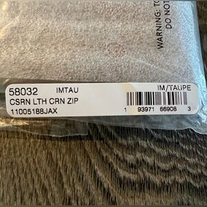NWT authentic Coach leather wristlet. Crossgrain taupe leather. Gold carriage logo and zipper with burgundy interior. Interior has two card holders. Smoke free home. Fast shipping.