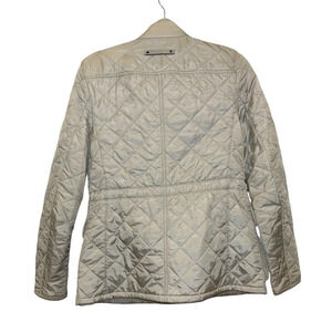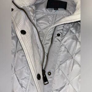 Minor flaws on last pictures shows a orange spot on shoulder, discoloration on inside neck & hem from wear