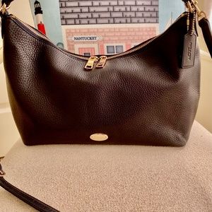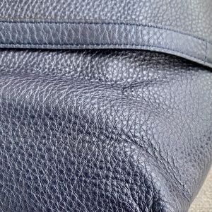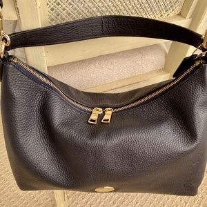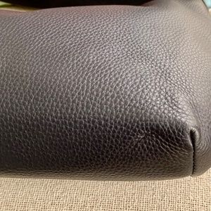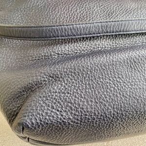 Bag is in excellent condition and shows no wear to the outside leather or inside of the bag. Gold hardware is shiny and free of scratches. Bag originally retailed for $350. Bag measures approximately 14 inches from side to side, 5 inches from top to bottom and has a depth of around 5 inches. Love the slouchy shape of this pebbled leather. Has a single carry handle and an adjustable longer strap for cross body wear. No smells, no stains and comes from a smoke free and pet free home.