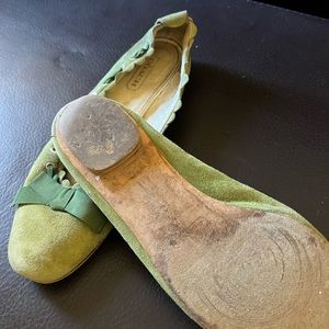 Green COACH flats, suede. No repairs have been don’t to the shoes souls.