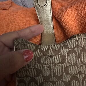 Stylish and durable, the Coach gold/brown phone case offers premium protection for your device. Its sleek design and quality craftsmanship make it a perfect accessory for any occasion.some rubbing on corners nothing bad.