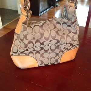 Cute signature C logo authentic Coach handbag. Super soft calfskin leather does have a few scratches here and there and is a perfect golden brown. Since this is a vintage bag it is of greater quality than modern Coach bags.