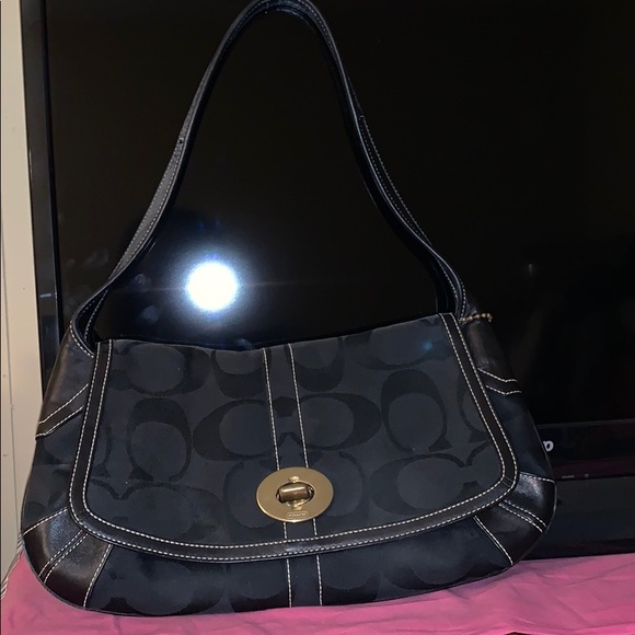 Black signature Coach handbag, 2 openings and outside pocket. Excellent condition just needs a good wipe off, it’s been in storage.