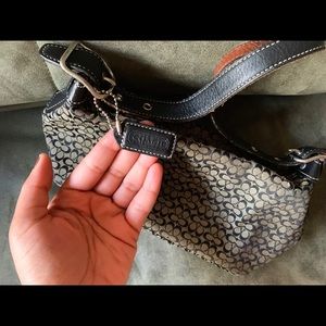 This grey and black Coach hand bag is gently used but greatly loved. It feathers a black leather strap, and leather details. This bag is perfect for any casual or work related affair ✨