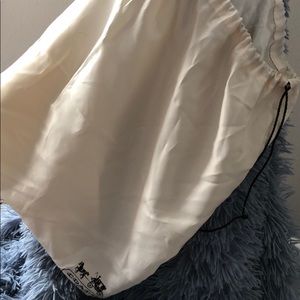 Buttercream bag with dust bag. A couple of small scratches. Two Zipper pockets on the front.