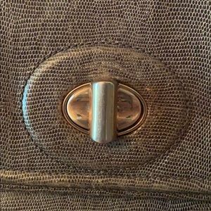 This gently used authentic Coach handbag is a steal! Minor wear (pen mark inside). Structured slate grey leather (mini croc embossed), brass enclosures. Perfect for office or out on the town! Fits TONS of stuff! 15” wide 10” tall 6” deep