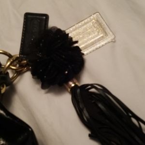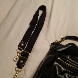 Black shiny pocket in the front three pockets on the inside as a little bit of wear at the top around the zipper