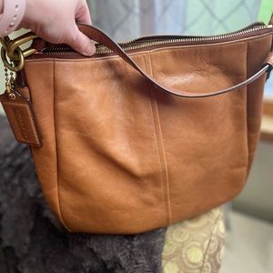 Vintage Coach leather shoulder bag with turn lock detail on front pocket. Brass hardware. Zipper top. Inside pockets. Very clean interior. Smoke free home. Pics show the patina and wear- very good condition and has been well cared for including moisture treatment etc with Coach cleaning products. A classic beautiful bag.