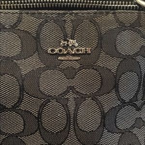 Bought this bag last summer. 3 main compartments, pockets on the inside of the middle compartment. Lots of storage. No stains. One of the supper pockets has a hole at the bottom. Still has care card inside. I have the wristlet as its own listing in my closet so details on it are on there.