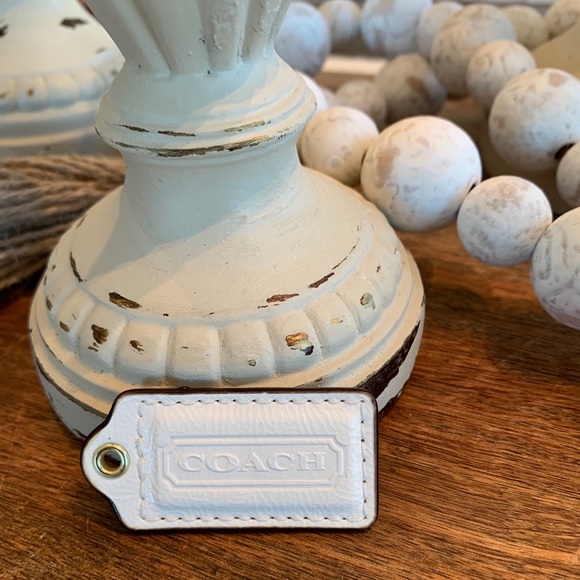 White patent leather coach hangtag.