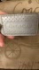Coach hangtag silver/grey with a perforated leather front and smooth back.
