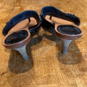 Chic black leather sandals with signature buckle detail. Ideal for stylish outings.