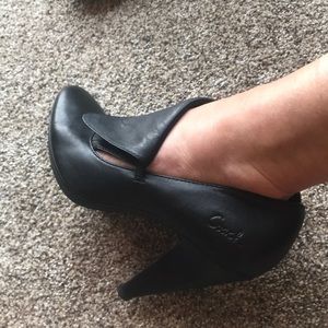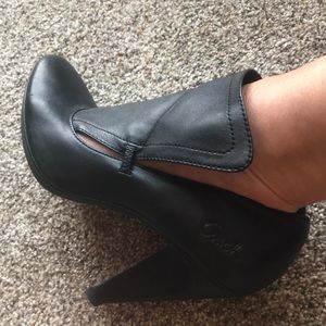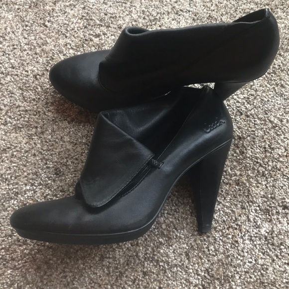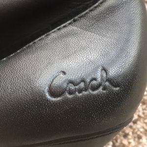So comfy! Fold over or fold up. Coach embossed on each shoe. One heel has minor scuffs. Shoes are in very good condition