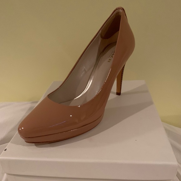 Nude, leather rounded toe heel. Only worn around the house, brand new condition!