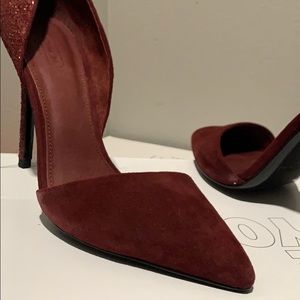 Beautiful like new sued coach heels with crystal back detail ✨ fit closer to a size 9