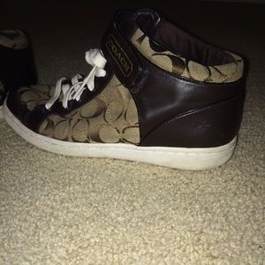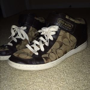 These are very comfortable Coach brand high tops purchased from Macy's. I've worn maybe 9 times in only dry sunny weather. Still in perfect condition with that new leather smell!