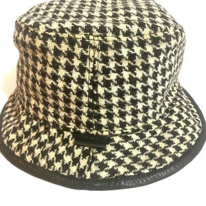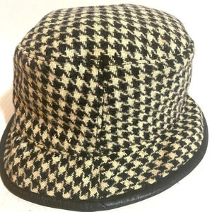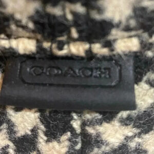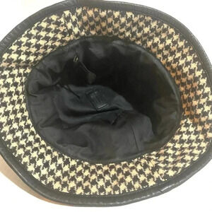 Coach houndstooth fabric hat with leather trim exterior wool lining polyester