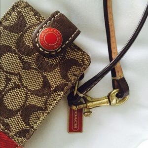 Super cute Coach iPod nano wristlet in brown and red. Used but in good condition.
