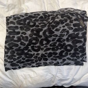 Coach infinity scarf with abstract print. Grey and black, sheer and easy to style. About 31x20