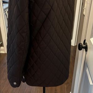 Beautiful brown quilted coach jacket zipper pockets covers butt