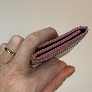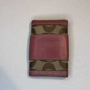 Signature with Mauve leather. 6 key rings one bent larger. All rings are secure. Some run at the leather where the snap is