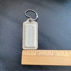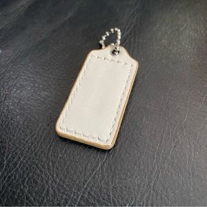 Color: Bone/Ivory leather & stitching, silver chain & eyelet, tan/light brown gum on the sides