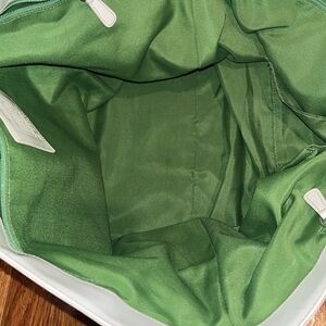 Gorgeous interior with several large interior pockets. Silver toned hardware. See all pics for signs of use and wear, could use some suede cleaner as pictured in a few spots.