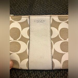Coach legacy logo zip wristlet in white and tan