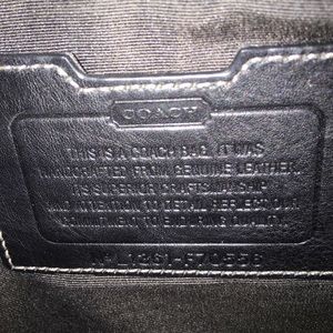 Black Italian leather with authentic Coach stamp and black canvas lining.