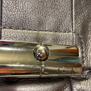 Has a bright blue material in the inside of the purse. With a cute clasp.