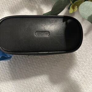 Elegant and versatile, this Coach black leather mini pouch is perfect for any occasion. Its sleek design and premium material make it a must-have accessory. Add a chain make a cross body or a wristlet.
