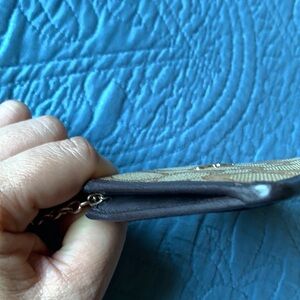 Credit card slot and ID window. Zip-top closure, fabric lining.