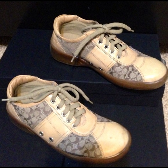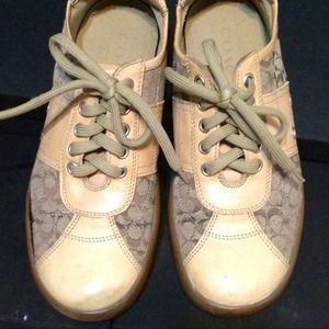 Lots of love left for this monogram coach shoes...will go cute with shorts or pants when u don't want to look super ragged & wants casual with a little flair ☺ (please note there's a portion of one shoe where the glue came off...will be easily fixed by shoe cobbler)