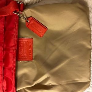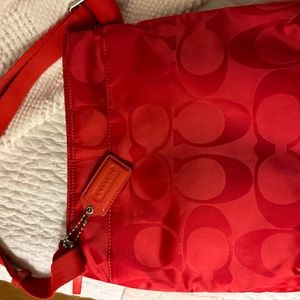 Coach nylon cross body bag in red. Excellent condition. Little to no signs of wear, clean interior lining.