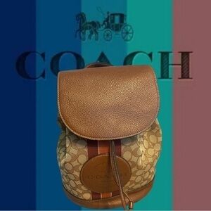 Coach of New York Dempsey Drawstring Backpack Jacquard w/patch & stripe 🔥EUC