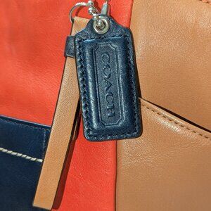 Coach orange/blue/tan tote with front twist lock. GUC!