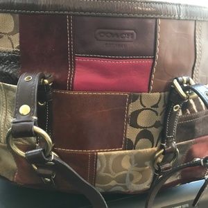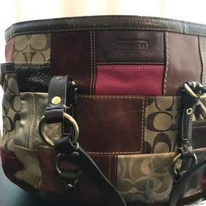 Coach patch work handbag. Mix of leather, snake, suede and signature jacquard c